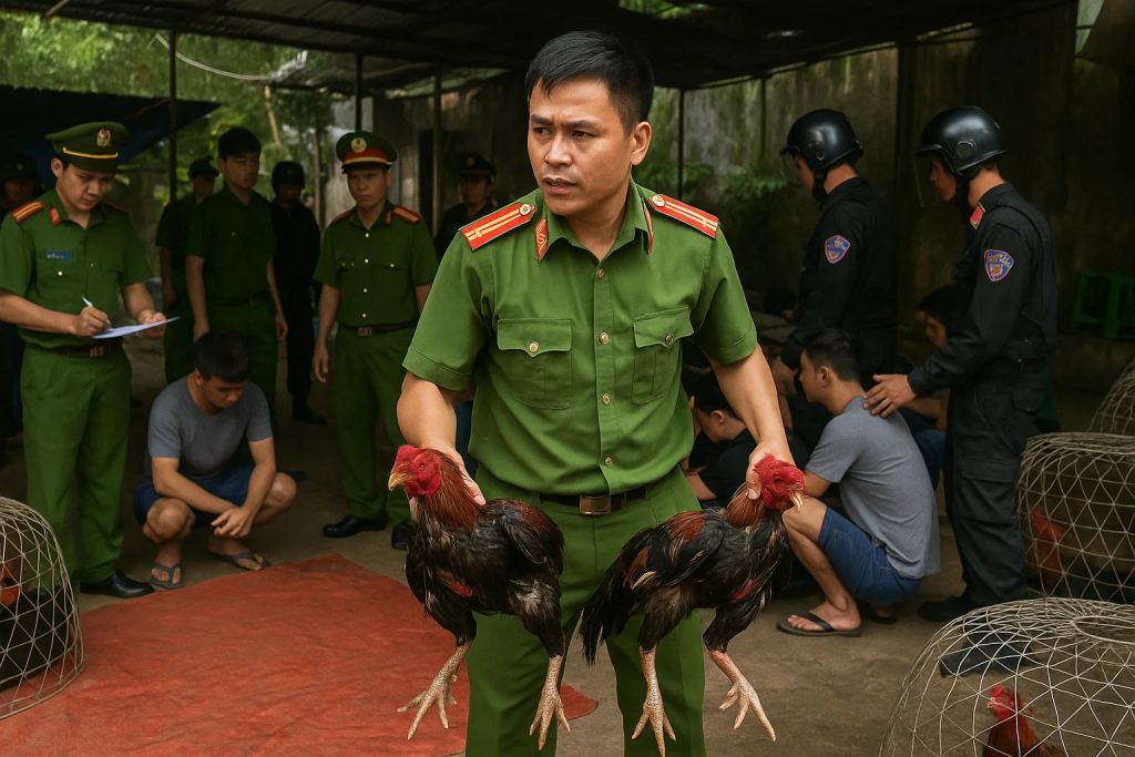 - Case 4 – Đồng Nai (12/2024): Bắt quả tang cá cược đá gà tại xã Bảo Quang; tang vật gồm gà, cựa sắt, điện thoại, xe máy – “bộ kit” quen thuộc của sới gà.
