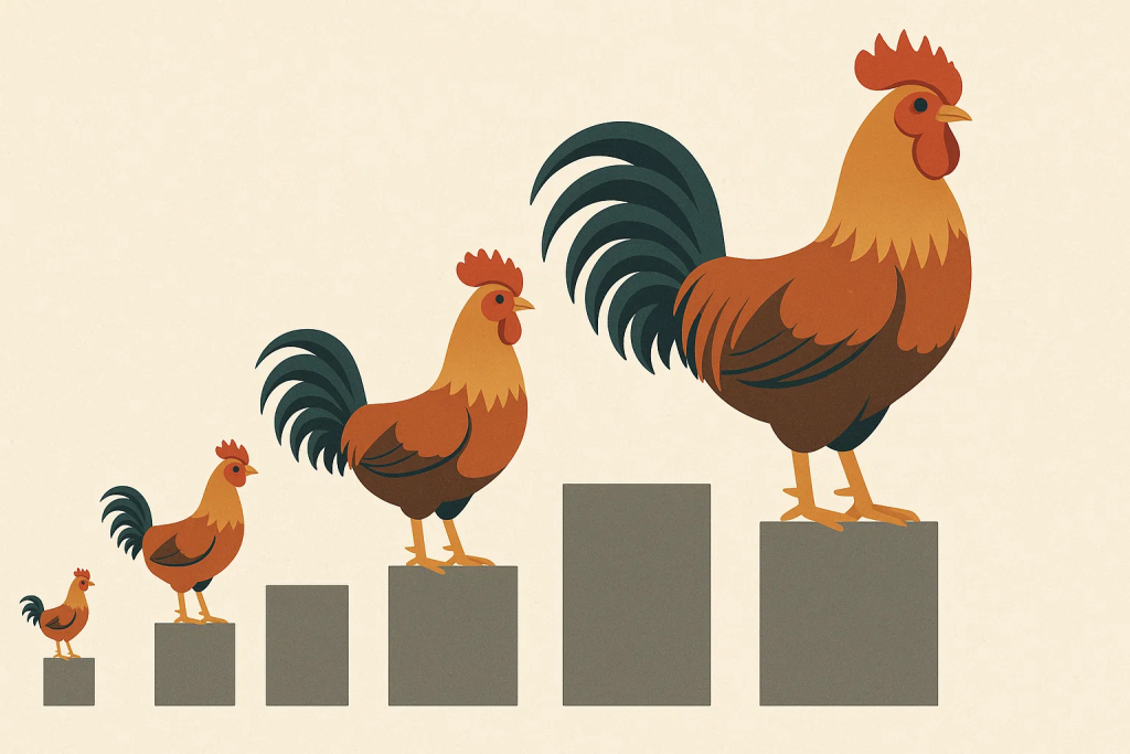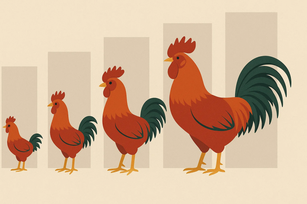 Bài viết định vị “scaling” kích cỡ gà trống như một xu hướng nhân đạo và hợp pháp trong chăn nuôi–triển lãm, hoàn toàn không phục vụ các hoạt động bạo lực. Trọng tâm là cách dùng kiến thức về kích cỡ–khối lượng để tối ưu sức khỏe, phúc lợi, thẩm mỹ giống và trải nghiệm cộng đồng. Lý do kích cỡ quan trọng: (1) liên quan trực tiếp đến bệnh khớp, gan nhiễm mỡ, tim mạch nếu lệch quá “khoảng tối ưu”; (2) phù hợp mục tiêu sử dụng (cảnh/triển lãm, trứng/thịt hộ gia đình); (3) giúp điều chỉnh khẩu phần, mật độ chuồng, vận động, nâng chất lượng sống.
